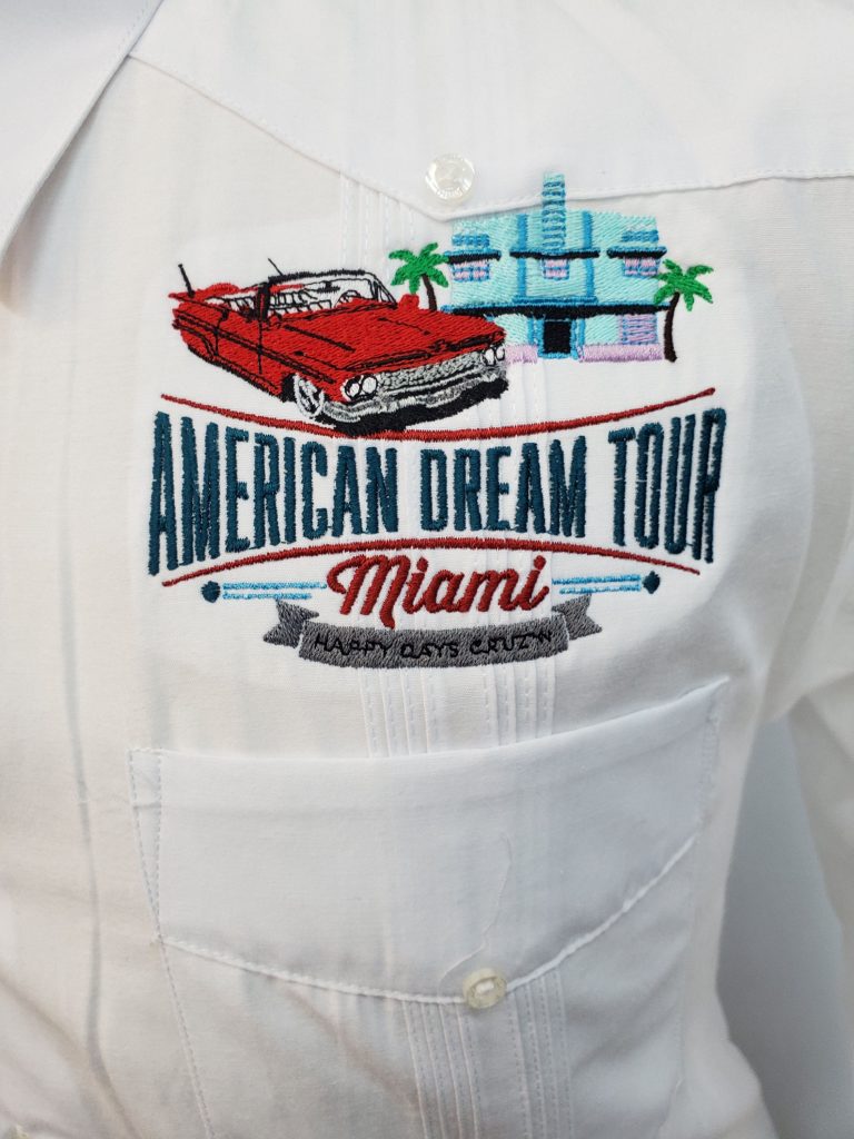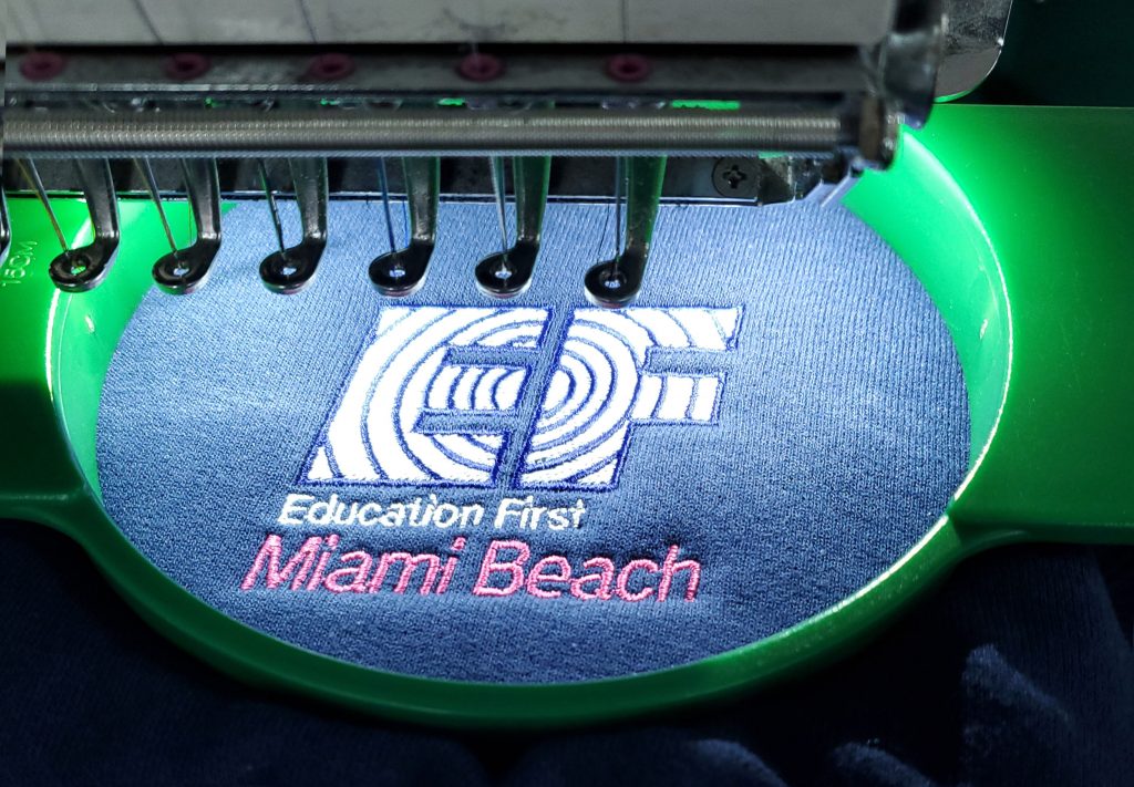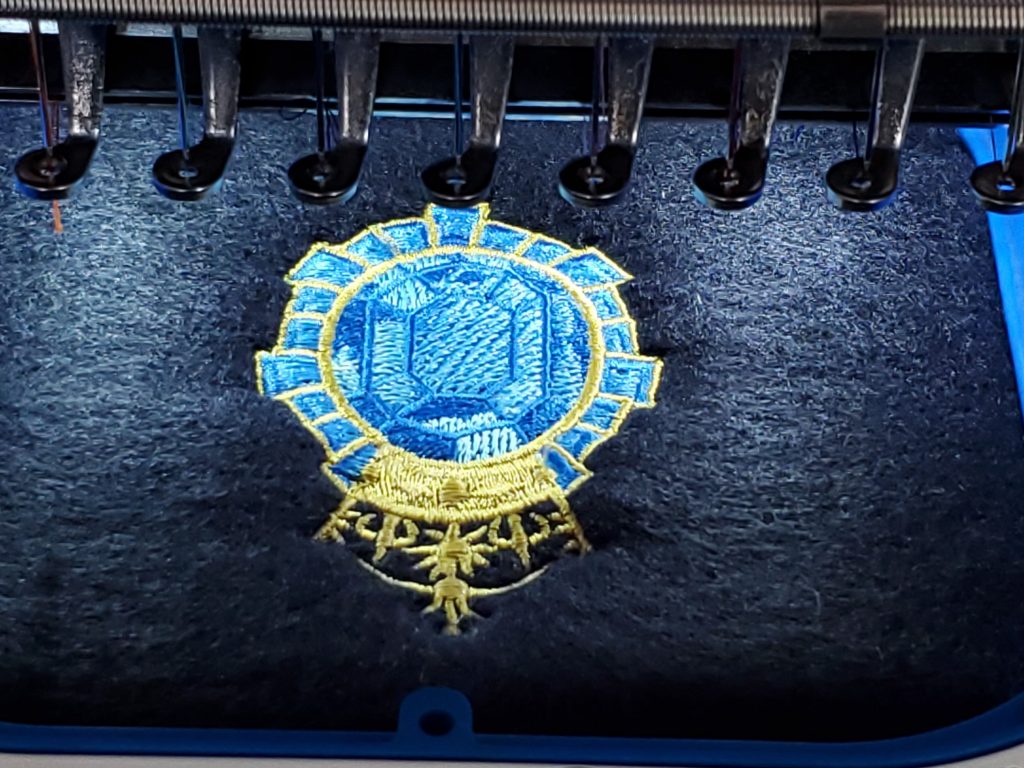 Embroidery projects begin with a name, logo, or piece of artwork. Through a special software, the artwork is “digitized” which means it can convert at 2-dimensional artwork into a specific count or stitches and thread.